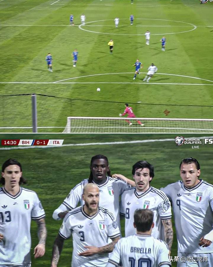 上半场第15分钟,波黑门将瓦西里传球出现致命失误,巴雷拉得到对手的乌龙助攻之后,迅速向左侧的基恩传递,而后者的直接不停球推射破门,也让意大利取得了领先;
