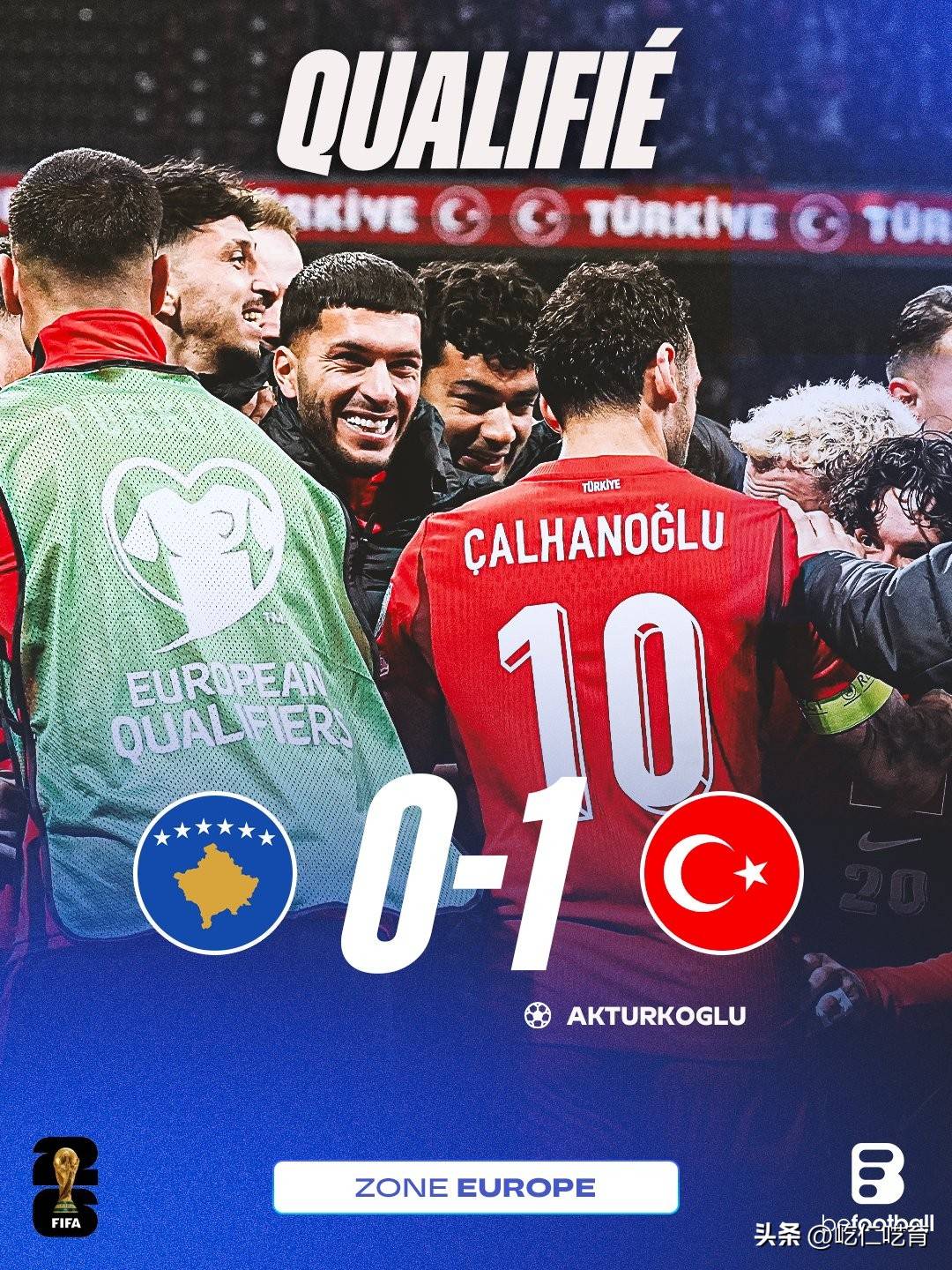 而在此后的比赛中,由于双方都未能再改写比分,这也让土耳其最终在客场带着1-0的比分取胜并拿到了球队自2002年之后的又一次世界杯参赛名额。