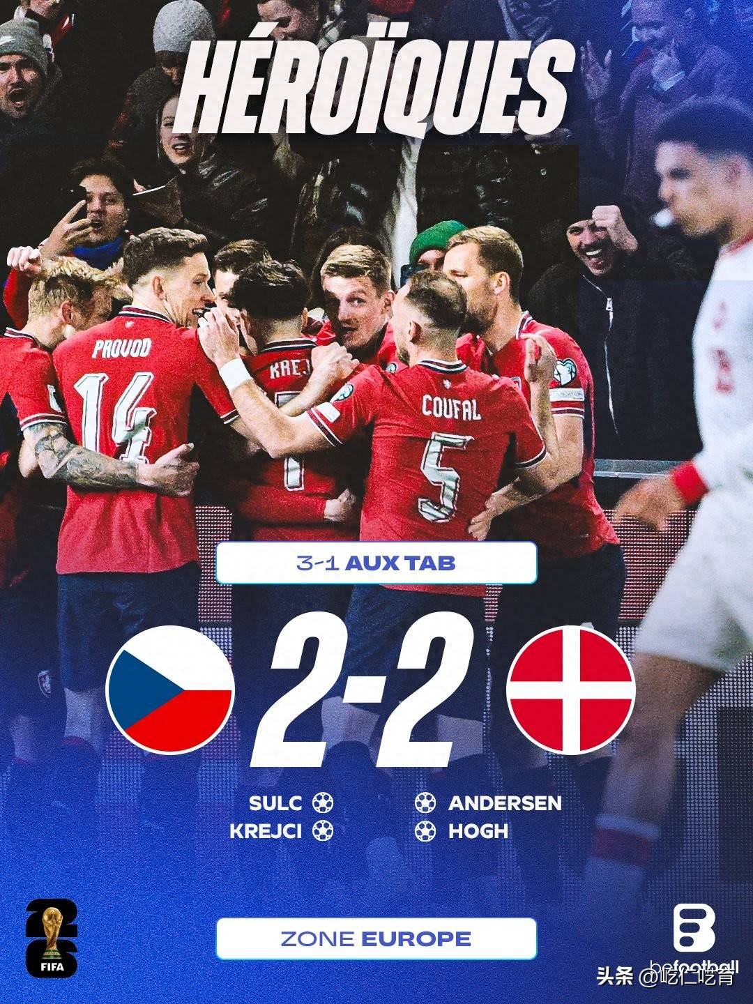 最终,捷克凭借更好的发挥和最后时刻在点球大战中更加稳定的发挥,以5-3的总比分击败了丹麦晋级世界杯!