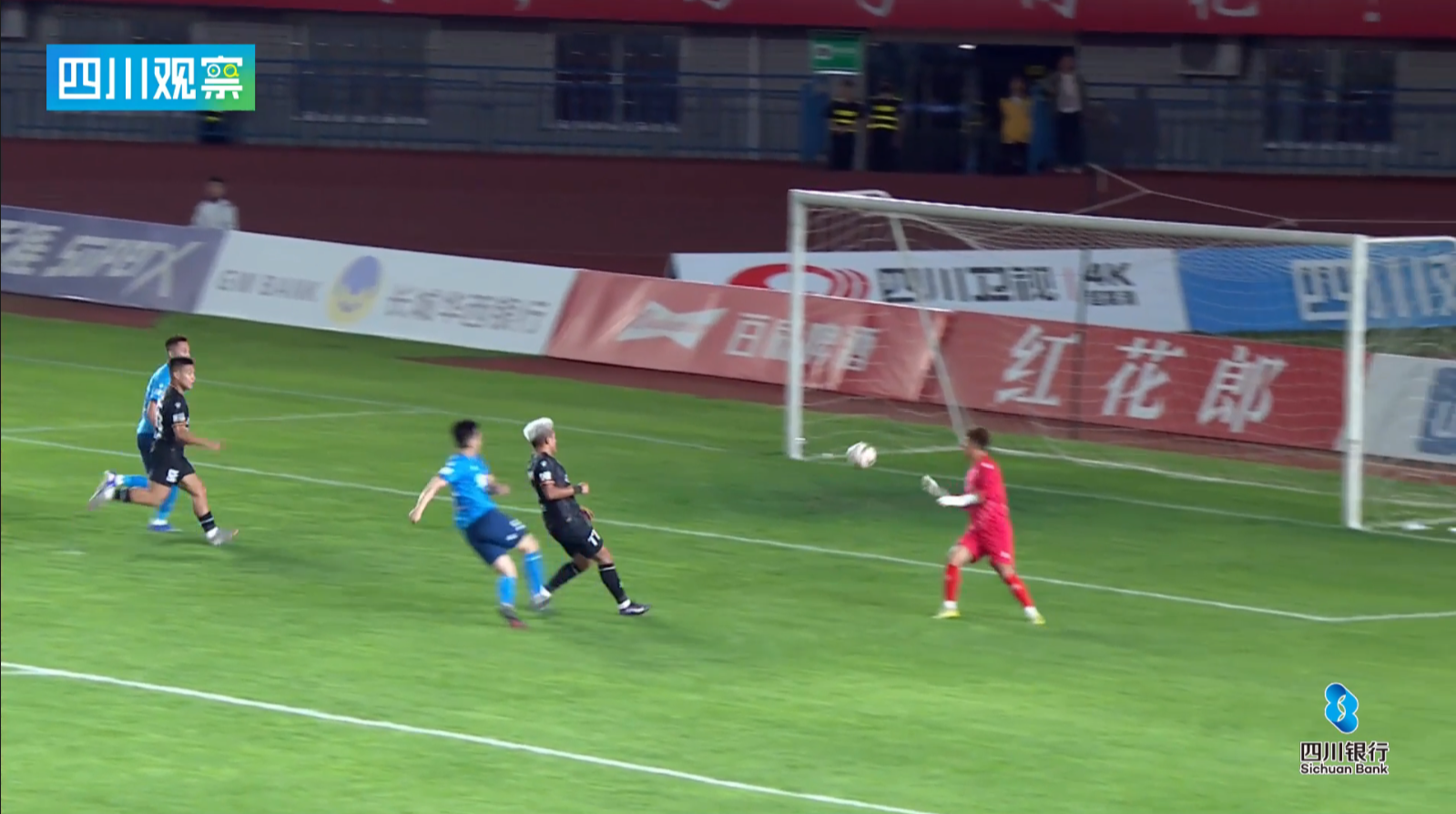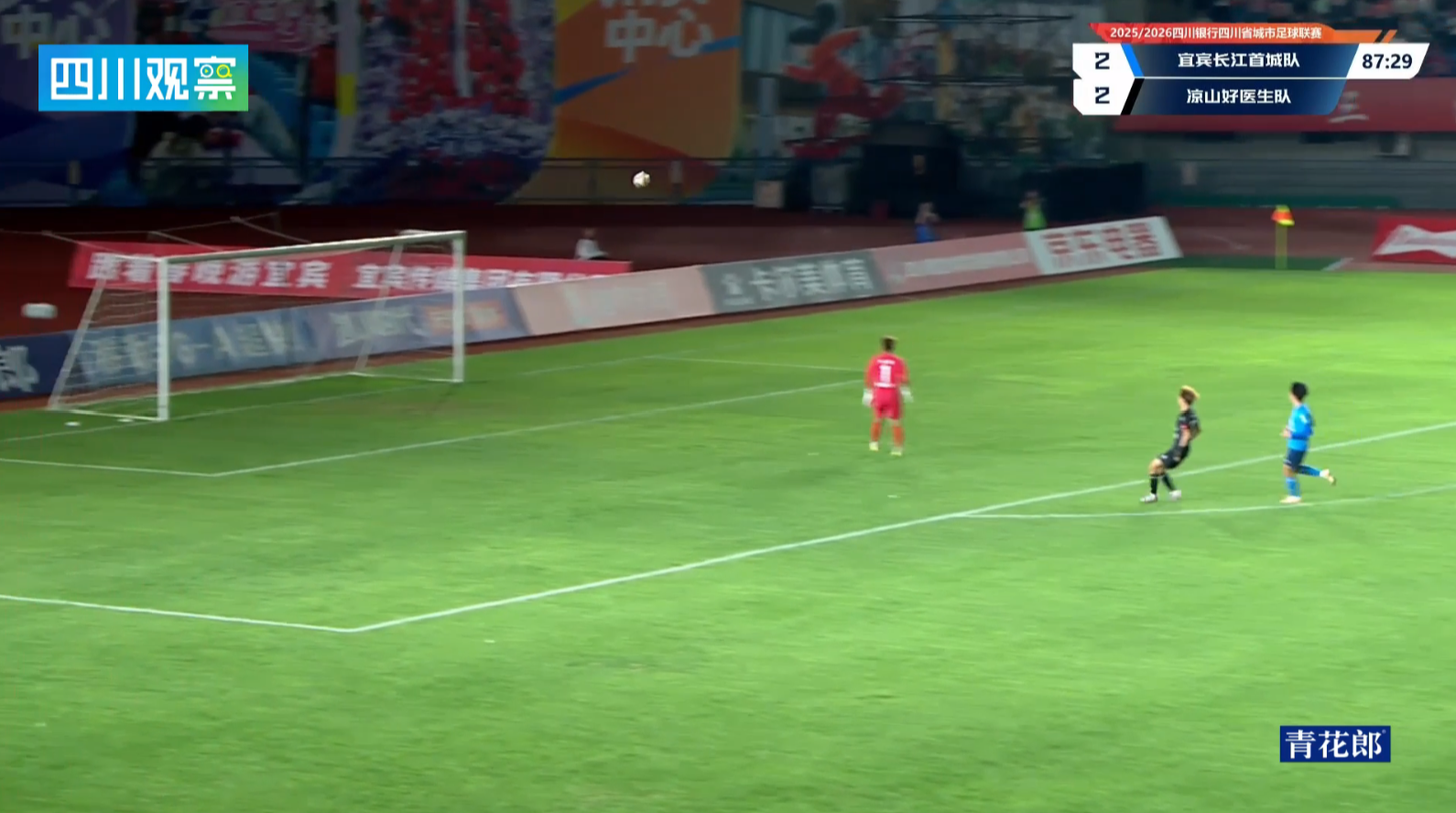 宜宾队62号前锋廖连杰接队友后场长传,形成单刀,面对出击门将一脚吊射,将比分改写为3:2。